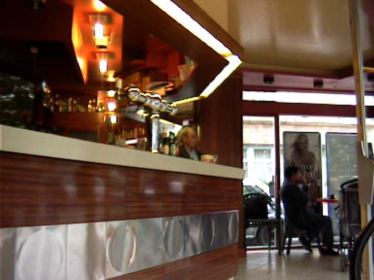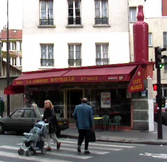 There's a big red bottle on the roof of this place, which seemed like a good enough reason for me to come here to write. There is a park across the street -- the green space that runs from the Canal St-Martin to Bastille -- and though the street here is occasionally full of cars, they are not making too much noise. ![]() My tabletop is square, yellow, and criscrossed with wavy, intersecting lines. There is a loud, unruly group in the corner, and people join and leave the group at regular intervals. The patron said something to me, probably related to my sitting here writing for so long, but I didn't understand anything except the end "pas dix," which could be "not ten" or "step ten" or maybe I misheard him altogether. French is a funny, minimalist language with not nearly enough distinct sounds. You have a whole bunch of people talking endlessly because they can only understand each other in context. It's not conducive to making up original sentences, because the French ear is so accustomed to hearing the same sequences of sounds. Don't get me wrong. I like French, especially in its written form. I guess what I'm saying is that I'm just bitter because they didn't invent a language that was easier for me to learn. Go figure. My espresso came in a brown cup with matching saucer; the sugar cubes came in a black and red packet. The ashtray is round clear glass with four notches for cigarettes. I wonder if four people have ever used all four notches simultaneously. Probably not. |