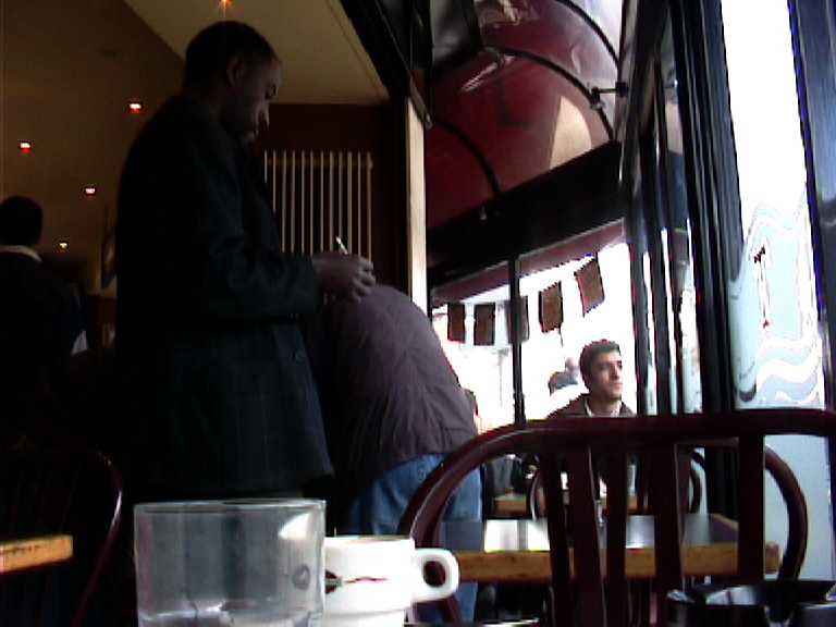 The chairs are metal, maroon-colored with polka dot maroon seat